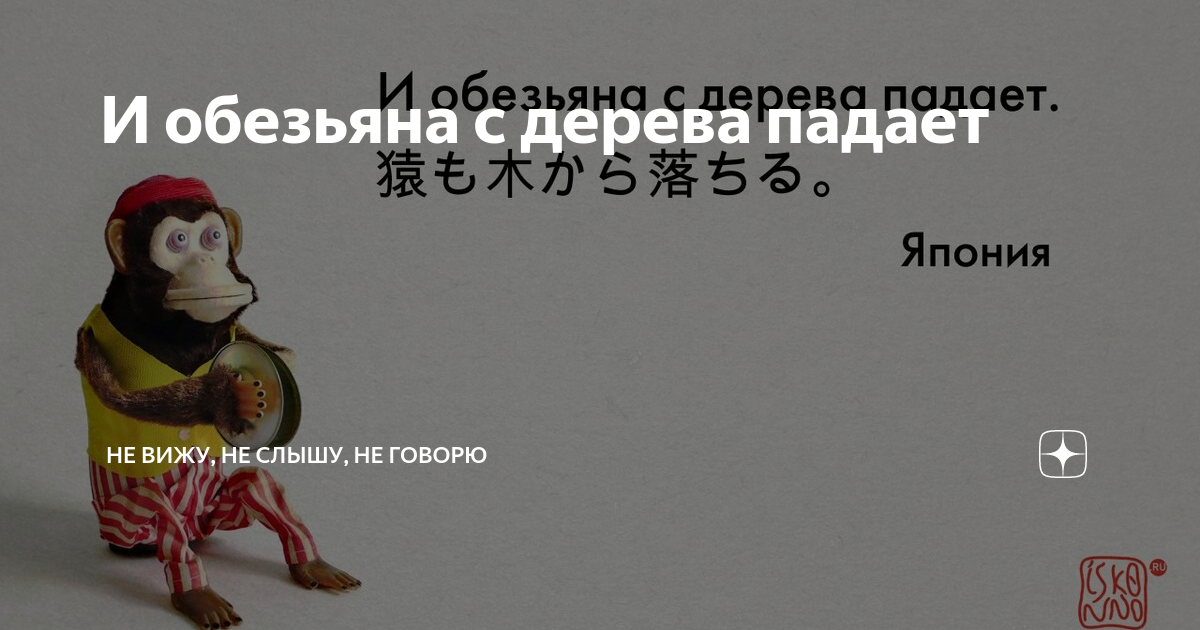 Данное выражение предлагает нам сохранять сбалансированный образ мышления и оглядываться на ситуацию с оптимистической точки зрения. Мы не должны стесняться наших ошибок или провалов, а должны принимать их как часть жизни, вести себя с достоинством и не впадать в отчаяние. Ведь даже обезьяны падают с деревьев, несмотря на то, что они специализируются на акробатике и балансе.