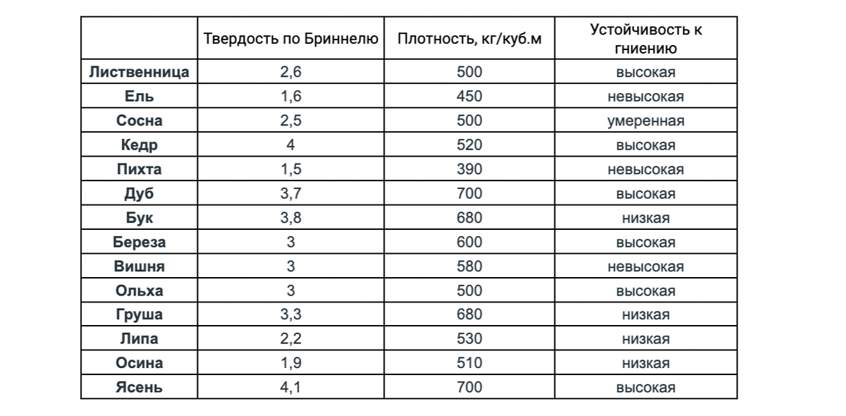 Породы деревьев по твердости списка